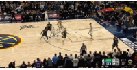 比赛最后时刻,掘金有一次快攻机会,威少和布劳恩下快攻,可惜威少的上篮没有命中。